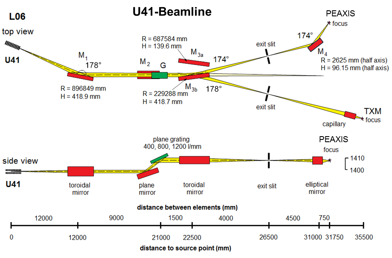 U41-PEAXIS beamline is one of the highest flux beamlines at BESSY II. It provides highly focused soft X-rays, thanks to the ellipsoidal refocusing mirror. The beamline is connected to a fixed endstation PEAXIS that is dedicated to studies of angle-resolved RIXS (Resonant Inelastic X-ray Scattering) and PES (PhotoElectron Spectroscopy) on solids.