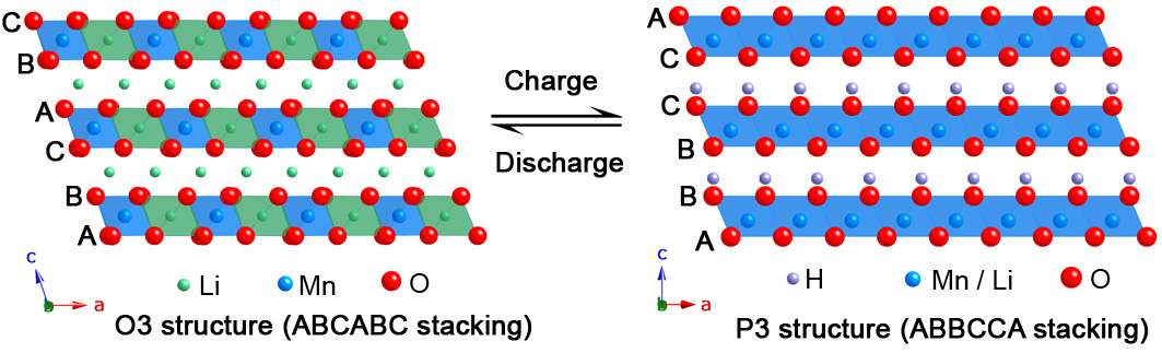 The scientists investigated charged-discharged samples of Li2MnO3 during the first and 33rd cycles by X-ray absorption spectroscopy (XAS) using synchrotron facilities of BESSY II at HZB and DORIS at DESY. “The element selectivity of XAS provides a unique opportunity to probe electronic, chemical and structural changes occurring at and around individual atom types in a material. Such a combination of element-specific information is rather difficult to obtain from X-ray diffraction which provides average changes in long-range structure of a material”, says Rana. They observed oxygen removal from the material during the first charge and shearing of oxygen layers as a result of the Li+-H+ exchange. These phenomena were previously proposed by various research groups. “The cumulative effect of such repetitive shearing of atomic layers during cycling is that the material gradually loses periodicity in atomic arrangements and, as a result, the electrochemical performance of a battery degrades upon cycling”, claims Dr. Rana.