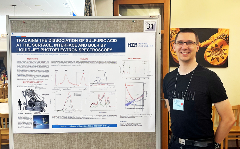 After a three-year hiatus due to the Corona pandemic, Robert attended the Gordon Research Conference of Water and Aqueous Solutions in Holderness, New Hampshire, USA. He presented recent liquid microjet data from sulfuric acid in water. From the valence and core-level spectra we can derive the dissociation constant as a function of probing depth, temperature and concentration. These dissociation constants are important input parameters for various climate (change) models, since aqueous aerosols of sulfate and bisulfate ions play a crucial role in cloud formation.