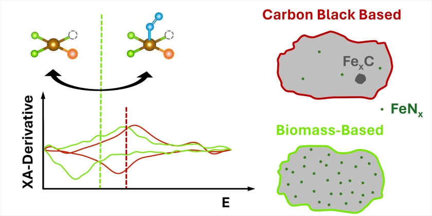 Congratulations Garlef and Hanna! Together with colleagues from the Institute of Engineering Thermodynamics of the German Aerospace Center and from the Carl von Ossietzky University in Oldenburg we investigated several iron-nitrogen carbon catalysts and characterized the atomic iron-based active sites under operando conditions by X-ray absorption spectroscopy at the iron K-edge. We found the reversible iron redox potential is lower compared to that of conventional catalysts, which is possibly due to hetero-atom doping and iron under-coordination. Please click here for more information.