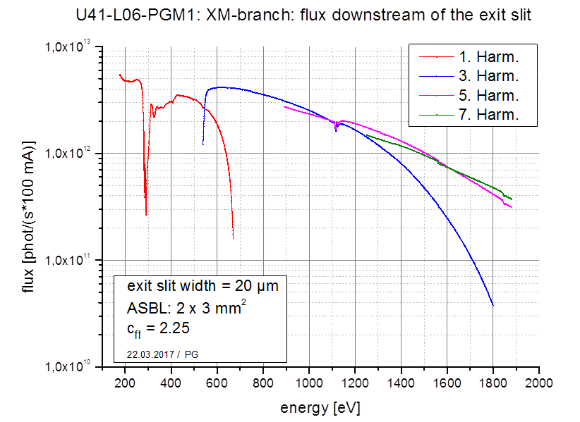 | Flux | up to 4·1012 photons/sec @100 mA and 20 μm exit slit for cff = 2.25 directly after the exit slit |