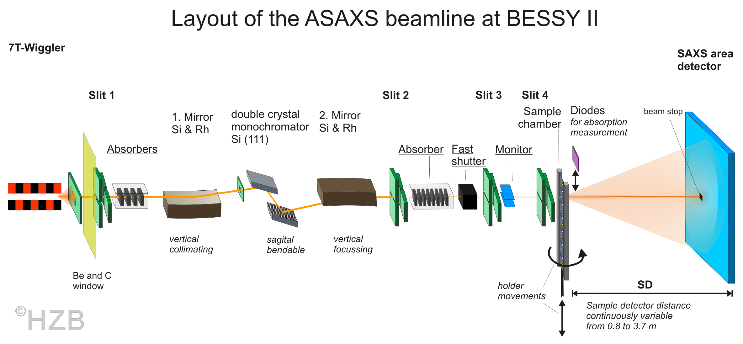 The ASAXS instrument is a moveable station at the monochromatic branch of the 7T-MPW beamline (more information about the 7T-MPW beamline can be found here).