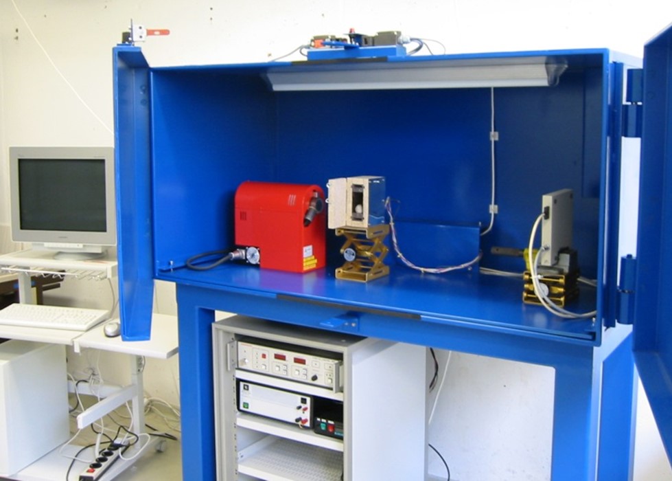 The fully shielded X-ray system for radiography provides an environment for a wide range of experimental applications in materials science. Thanks to its modular design, the system can be flexibly adapted to different experimental setups, allowing a wide range of sample environments (atmosphere, pressure, temperature, etc.) to be utilised. It consists of a microfocus X-ray source with a maximum acceleration voltage of 150 kV and an adjustable focus size between 5 and 50 µm. Various detectors up to a size of 120 x 120 mm allow time-resolved image acquisition with magnifications that can be adapted to the sample size. An optional rotation stage setup also offers the possibility of acquiring tomographic volumes in this system.