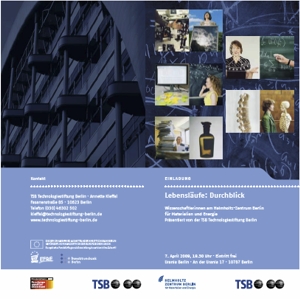 Am HZB forschen Frauen unter anderem für bessere Brennstoffzellen und für Materialien für „organische Elektronik". Sie blicken Rembrandtgemälden unter den Lack, lassen Protonen aufmarschieren zur Krebsbekämpfung oder sie sind für 1100 Mitarbeiter/-innen und einen 100 Millionen-Euro-Etat verantwortlich. Vier der HZB Forscherinnen sprechen am 7. April 2009, 19:30 Uhr in der Urania im Rahmen der TSB Veranstaltung "Lebensläufe: Durchblick" mit dem Wissenschaftsjournalisten Thomas Prinzler darüber, was sie am HZB machen, wie sie zum wurden, was sie sind - und natürlich auch über die Stolpersteine auf dem Weg dorthin. Es geben Auskunft: