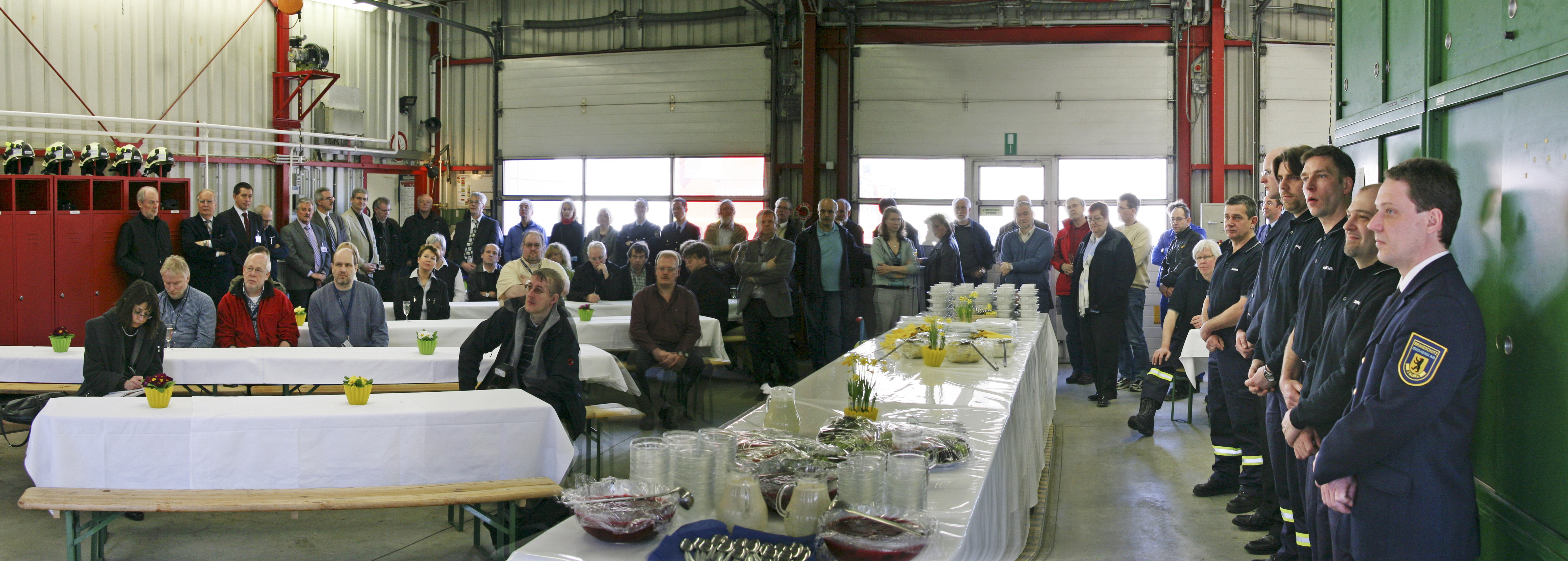 Ein rundes Jubiläum hat heute die Betriebsfeuerwehr am Standort Wannsee des HZB gefeiert: Die „Löschgruppe HMI“ der Siemens-Werksfeuerwehr nahm am 1. April 1990 ihren Dienst auf. Seitdem sorgen Siemens-Mitarbeiter im Auftrag des heutigen HZB dafür, dass das Forschungszentrum sich professionell gegen Brand- und Katastrophenfälle schützt und im Alarmfall adäquat handeln kann. Den 20. Jahrestag haben die Feuerwehrmänner heute gemeinsam mit Gästen des HZB, der Firma Siemens, der Berliner Feuerwehr und der zuständigen Behörden mit einem Mittagsimbiss gefeiert.