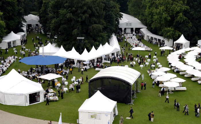 Auf über 3.000 Quadratmetern Fläche werden die Organisatoren im Park von Schloss Bellevue eine Zeltstadt aufbauen. Nicht nur für die Aussteller, sondern auch für die etwa 80 Fachforen und die rund 12.000 Besucher aus Wissenschaft, Politik und Wirtschaft wird so ausreichend Platz geschaffen.