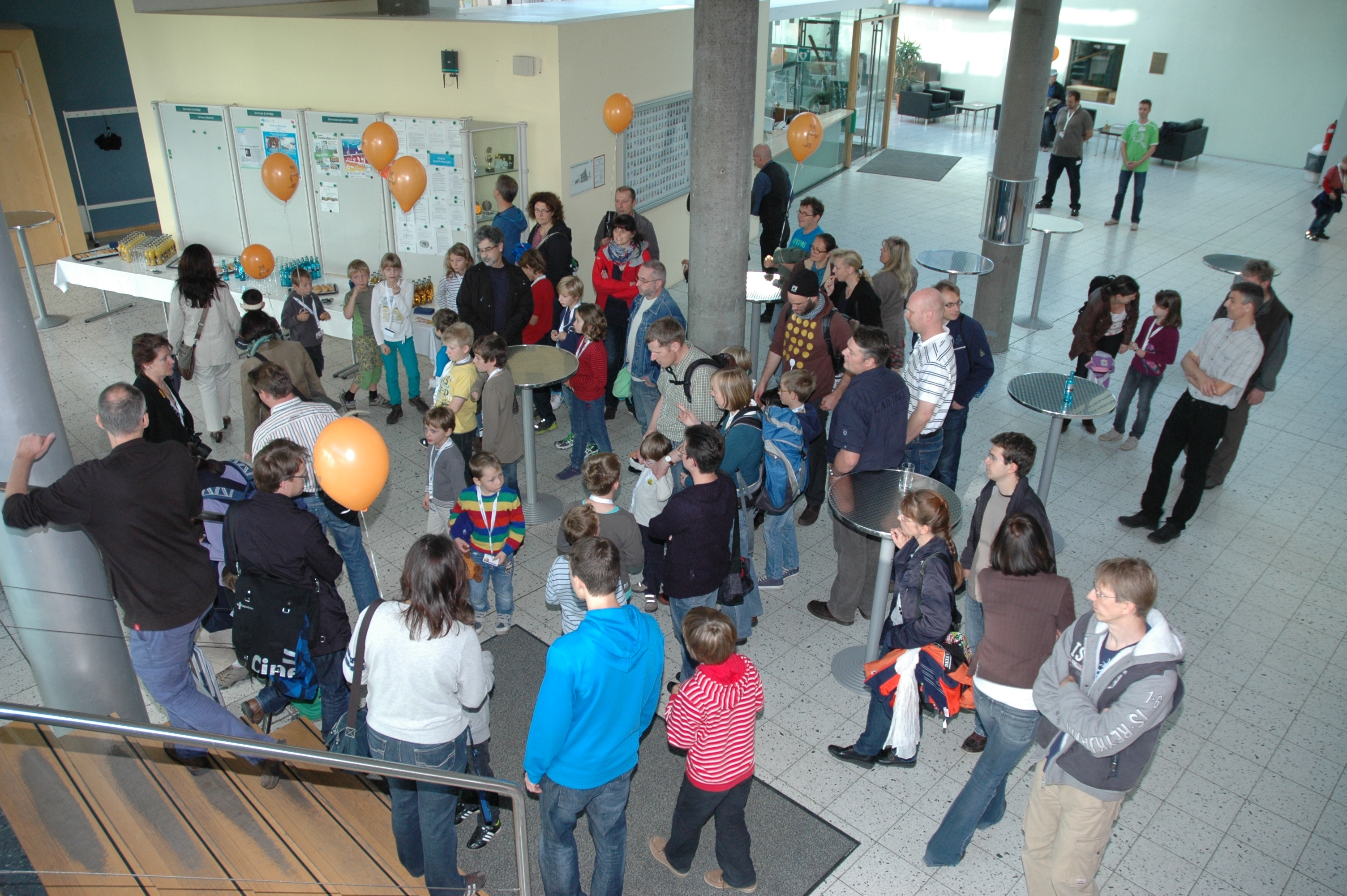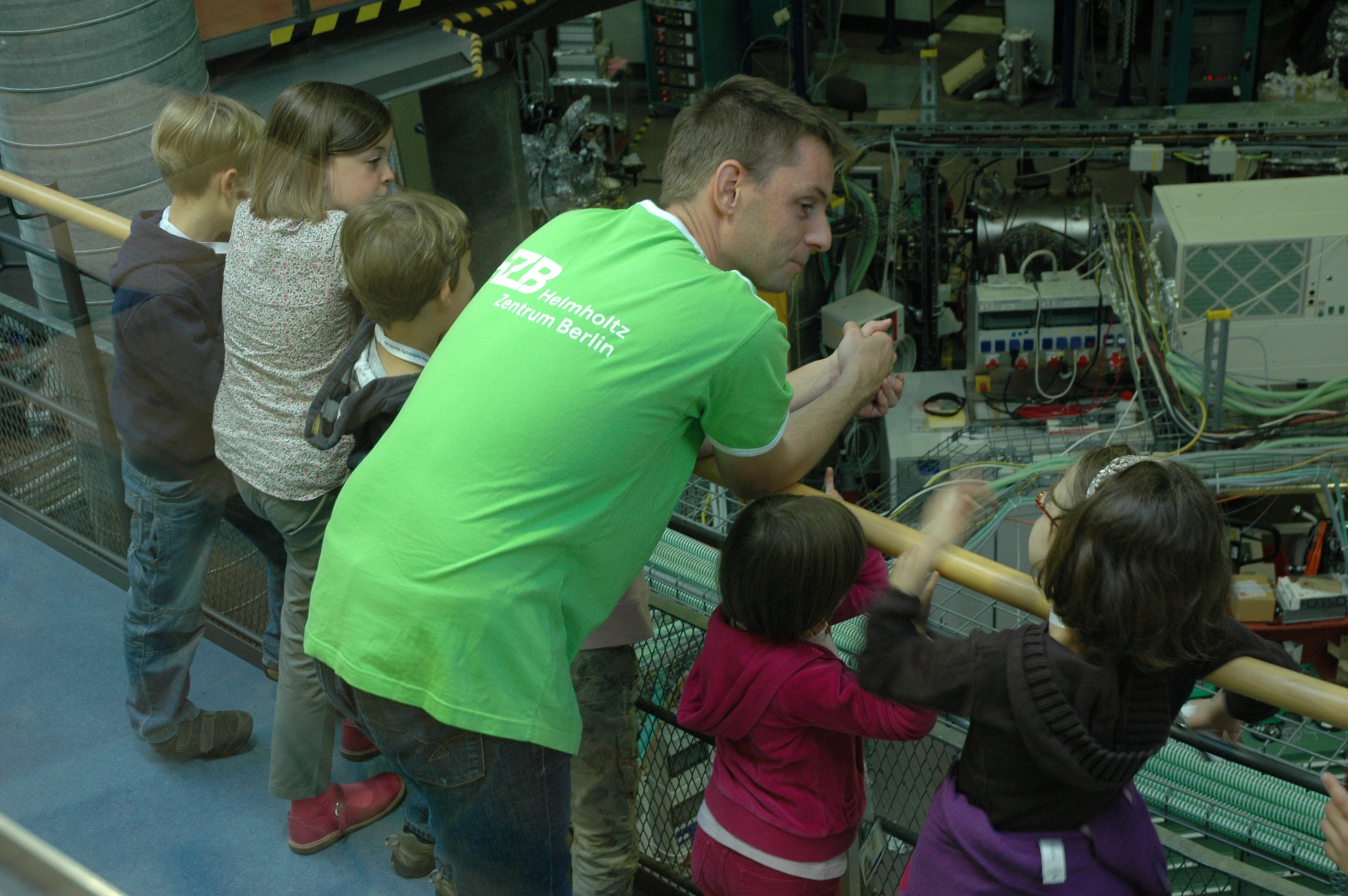 70 Kinder und noch mehr begleitende Erwachsene kamen am 3. Oktober 2012 zum Maus-Türöffnertag an das Helmholtz Zentrum Berlin am Standort Adlershof, um einen Blick auf die Arbeit der Wissenschaftlerinnen und Wissenschaftler zu werfen. Anlass war ein Aufruf von der Sendung mit der Maus, am Tag der Deutschen Einheit einen „Türöffnertag“ zu veranstalten: Dabei sollten die Kinder etwas sehen dürfen, das normalerweise nicht für sie zugänglich ist, so wie der Synchrotron Speicherring BESSY II, den eigentlich nur Erwachsene besichtigen können. Den Tag ermöglicht hat Dr. Antje Vollmer, zusammen mit engagierten Mitarbeiterinnen und Mitarbeiterinnen des HZB hat sie ein Programm für die jungen Besucher entwickelt und sie in zwei Schichten durch BESSY II geführt. Mitgemacht haben Maximilian Bauer, Esther Dudzik, Karsten Holldack, Christian Jung, Torsten Leitner, Marcus Lörgen, Atoosa Meseck, Stephanie Rädel, Olaf Schwarzkopf, Florian Staier, Daniela Theile und Manfred Weiss. Ihnen allen sei herzlich gedankt.