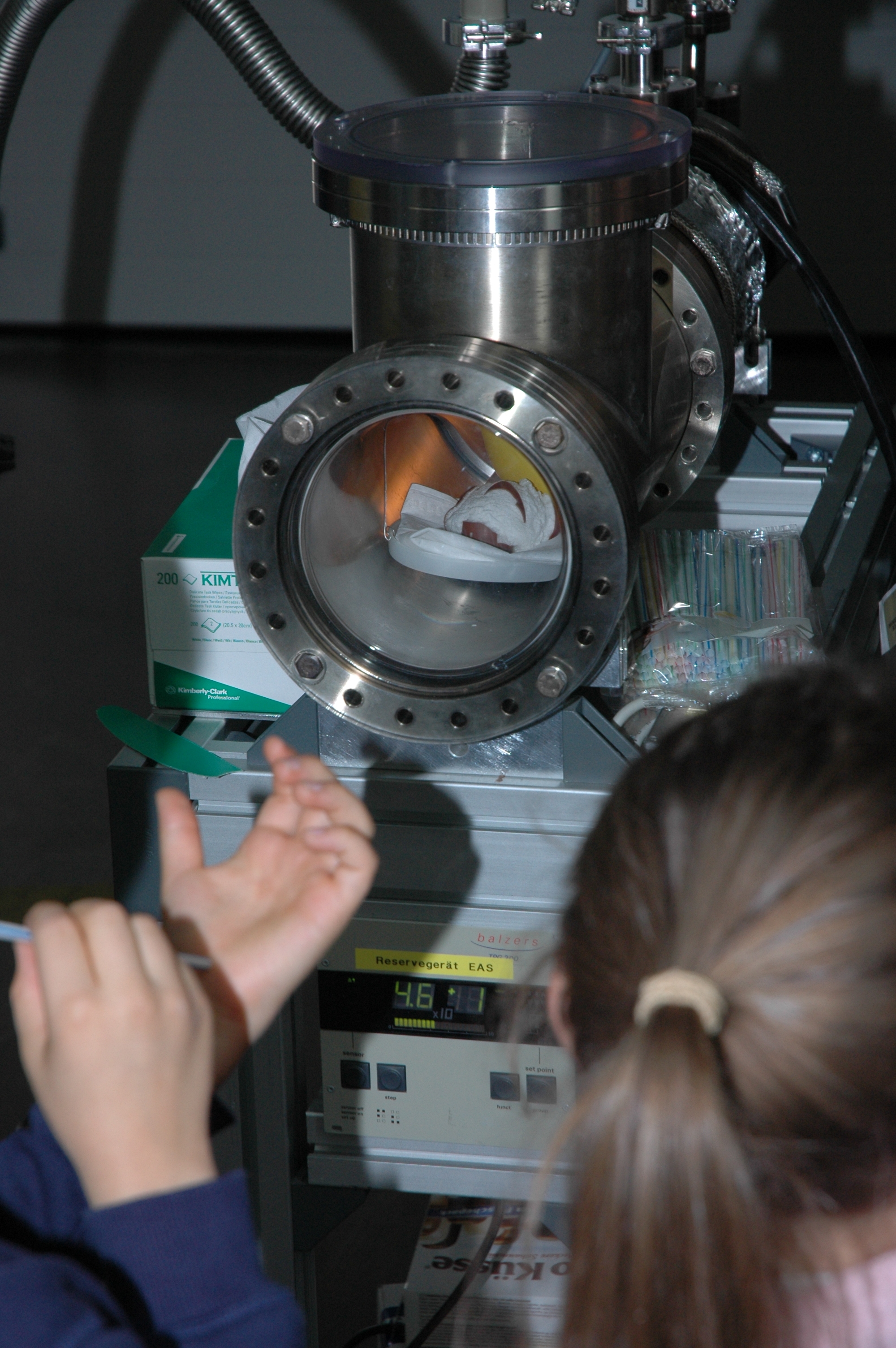 Zusätzlich gab es Versuche, zum Beispiel mit Schaumküssen im Vakuum, die am Ende auch gegessen werden durften. Die Produktion von Schokoladeneis mit flüssigem Stickstoff war ein letzter Höhepunkt des Tages, der im Foyer dann mit kleinen Geschenken und Süßigkeiten ausklang. Die Kinder waren begeistert und auch den Mitarbeiterinnen und Mitarbeitern hat der Maustag so großen Spaß gemacht, dass sie auch nächstes Jahr die Türen für das ganz junge Publikum öffnen wollen .