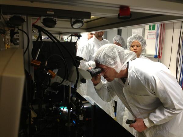 Rundgang durch das Ferdinand-Braun-Institut (@FBH_News): ScienceTweetup im Reinraumlabor pic.twitter.com/eZ0jv5WSVI, Foto: Henning Krause