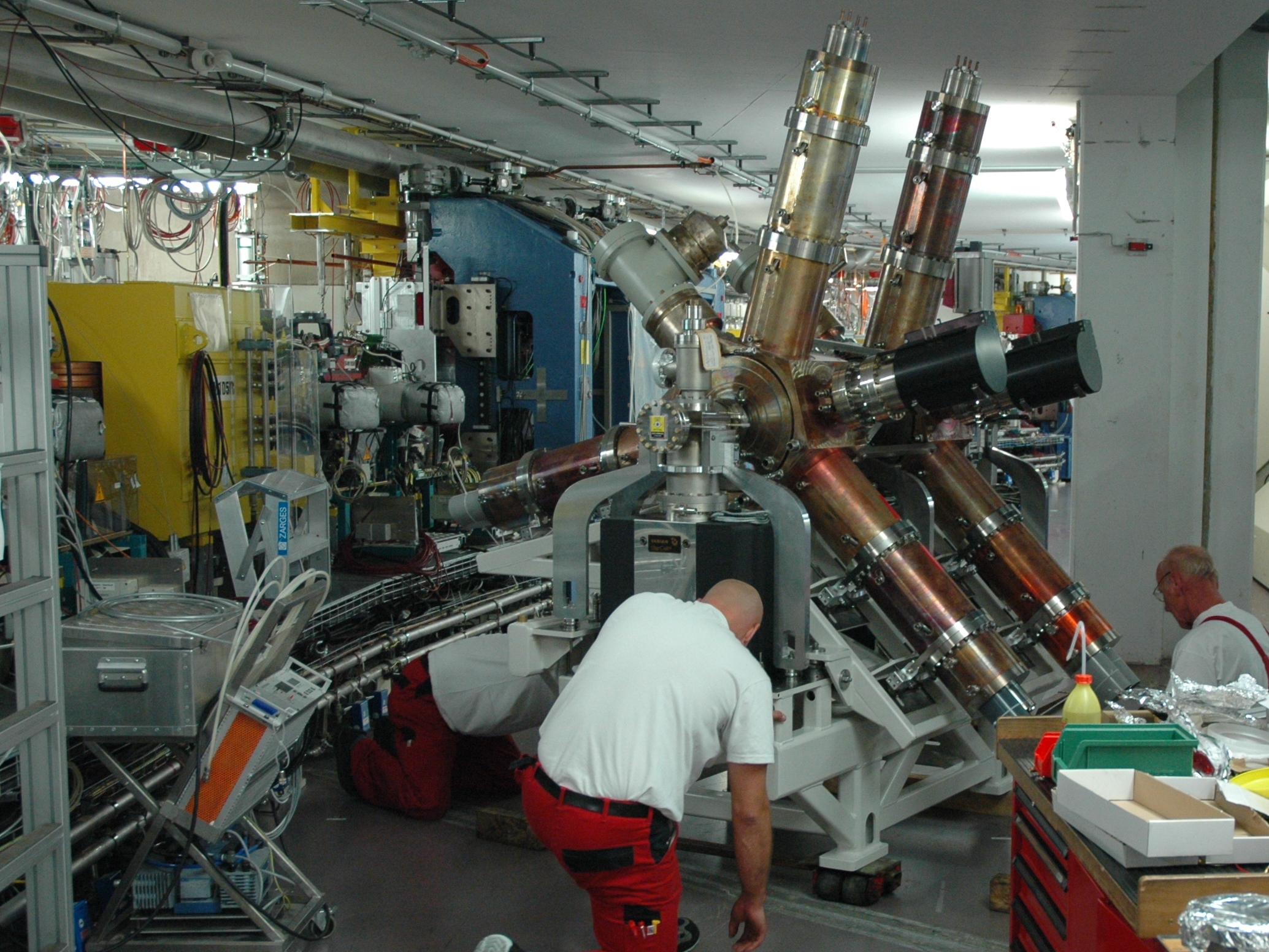 Ein Herzstück von BESSY II sind vier Kavitäten, Hohlraumresonatoren, die dafür sorgen, dass die Elektronen im Speicherring die Energie wieder aufnehmen, die sie als Lichtpakete abgegeben haben. Die alten Kavitäten stammen noch aus den 1970er Jahren, sie waren bei DESY in Hamburg eingesetzt, dann bei BESSY I und seit 1998 bei BESSY II. „Doch langsam ist ihre Lebensdauer erreicht“, sagt Dr. Wolfgang Anders aus dem HZB Institut SRF Wissenschaft und Technologie. Der Experte war dafür verantwortlich, während des Sommer-Shutdowns zwei der vier alten Kavitäten durch neue Komponenten auszutauschen.