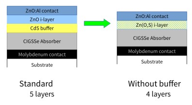 The HZB researchers have now managed to modify the i- zinc oxide layer, which sits on top of the buffer layer, in such a way as to have it take on the job of buffer.