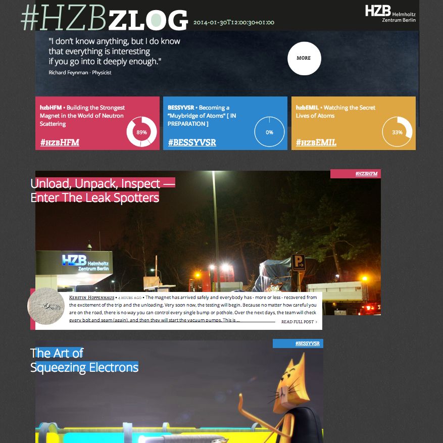 Das #HZBzlog ist eine Mischung aus Gruppenblog, Magazin und Langzeitdokumentation. Es ist offen für user-generated-content, und es folgt zugleich vorgegebenen Erzählstrukturen und angelegten dramaturgischen Bögen. Thematisch geht es um Zukunftsprojekte des HZB, die entweder gerade geplant werden oder sich schon im Aufbau befinden.