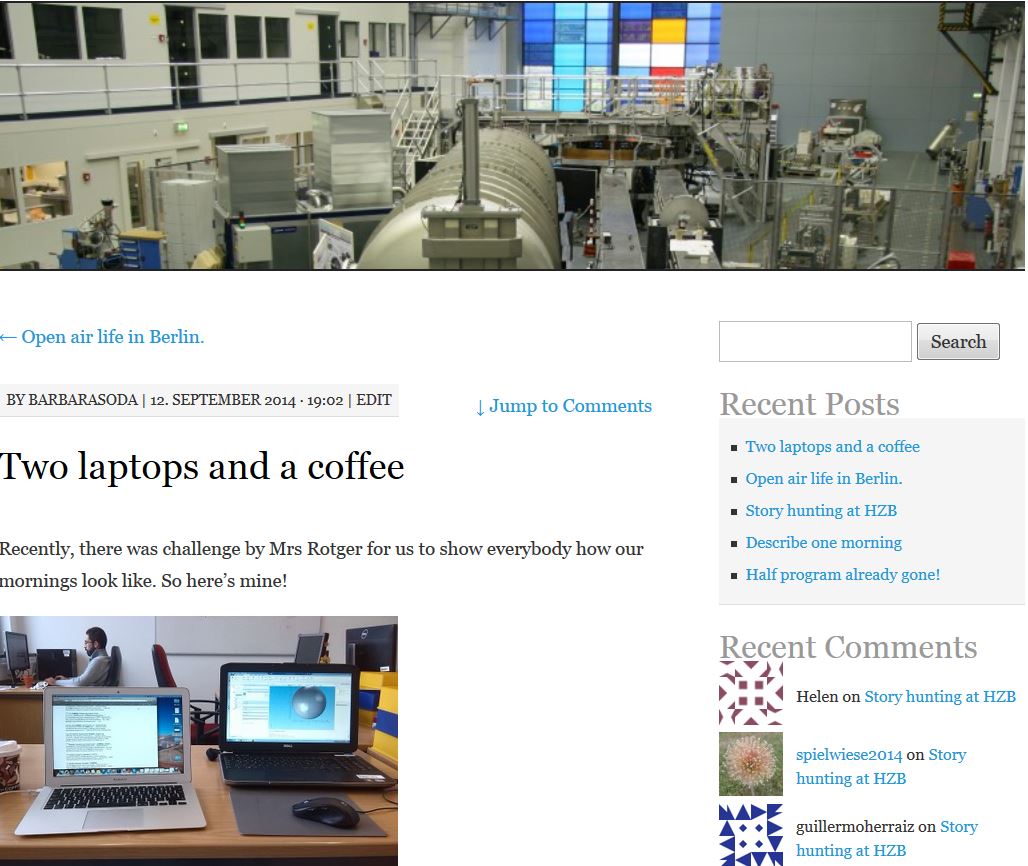 Doch sie machen hier nicht nur ihre ersten wissenschaftlichen Erfahrungen, sondern viele von ihnen beteiligen sich auch an einem Kommunikationsprojekt, dem hzb2014summerschool – Blog: Manche schreiben vor allem über ihre Erlebnisse in Berlin, andere aber auch über ihre Erfahrungen, Rückschläge und Erfolge in ihrem Forschungsprojekt. Das könnte auch für künftige Studentinnen und Studenten spannend sein.