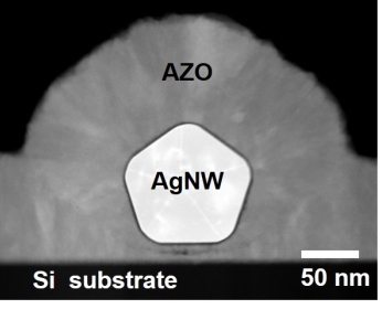 A STEM-cross sectional image of an Silver-nanowire encapsulated by AZO. doi:10.1016/j.nanoen.2015.06.027 © Elsevier in