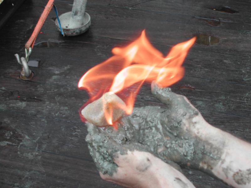 Methanhydrat bildet sich unter den extremen Bedingungen der Tiefsee und wird an der Luft zu "brennendem Eis" © Science Party SO174/GEOMAR Helmholtz-Zentrum für Ozeanforschung Kiel.