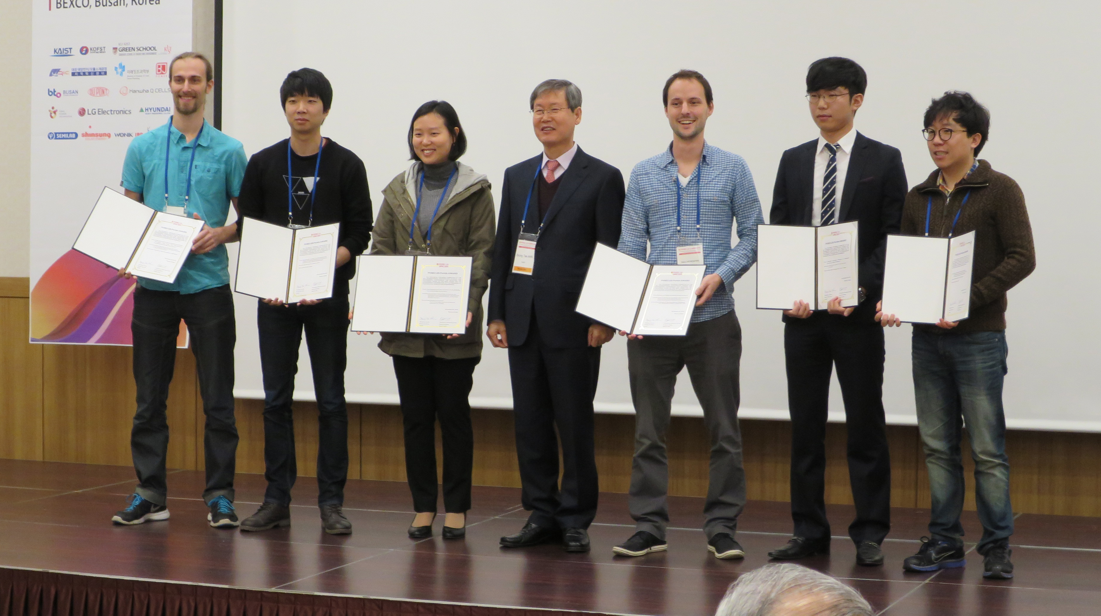 Die Verleihung der PVSEC-25 Paper Awards. Links: Jan-Peter Bäcker und Dritter von rechts: Marc Daniel Heinemann.