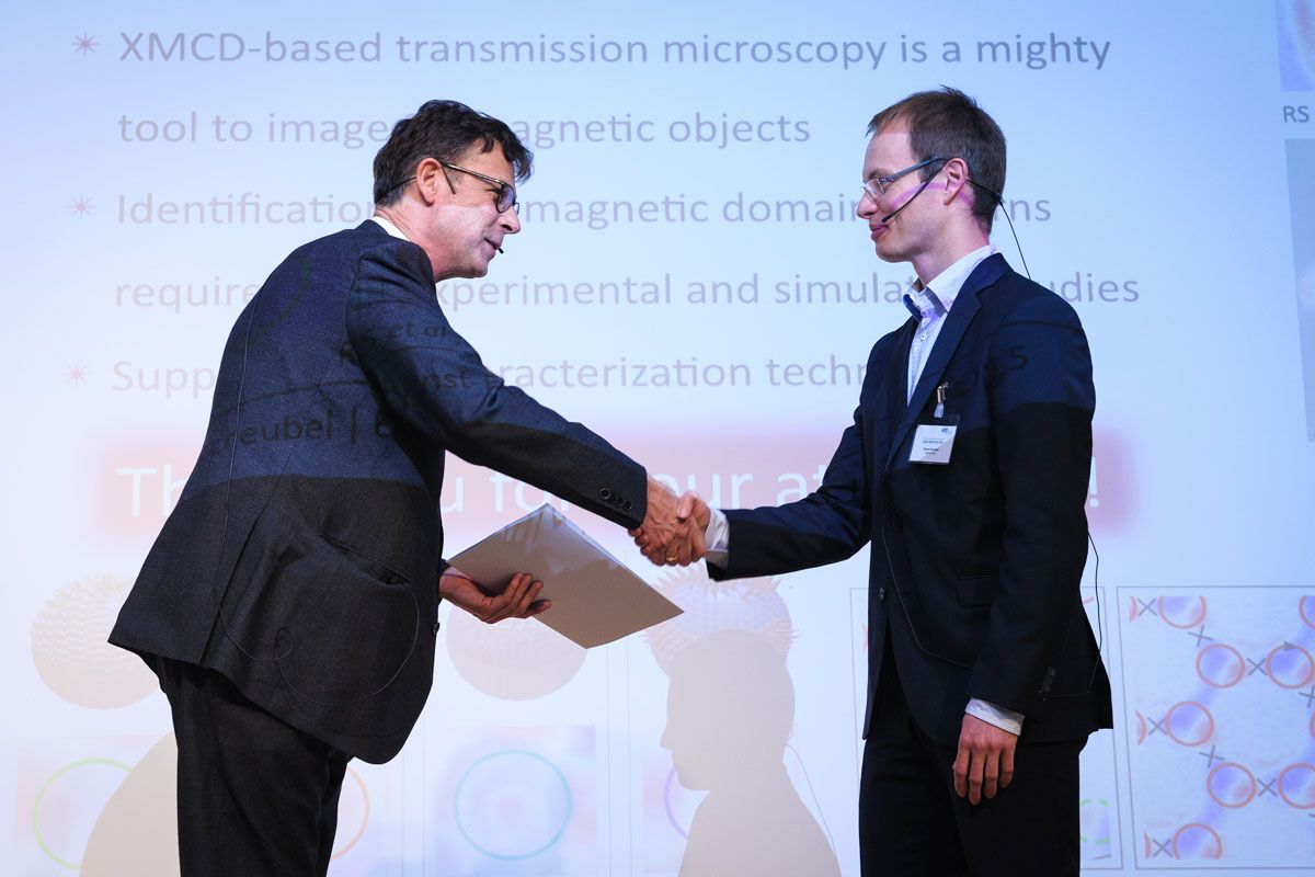 Dr. Robert Streubel, inzwischen Postdoc am Lawrence Berkeley National Laboratory, wurde für seine Promotionsarbeit „Imaging Spin Textures on Curved Magnetic Surfaces“ an der Technischen Universität Chemnitz ausgezeichnet, in der durch eine neue Kombination von Röntgen-Absorptionstomographie und -Photoemissionsmikroskopie dreidimensionale magnetische Strukturen mit zirkular polarisierter Strahlung untersucht wurden. Die Messungen fanden im Rahmen von Forschungsprojekten des Leibniz-Institut für Festkörper- und Werkstoffforschung Dresden bei BESSY II statt. Ein Teil der in der Community bereits sehr beachteten Ergebnisse wurde in Nature Communications veröffentlicht.