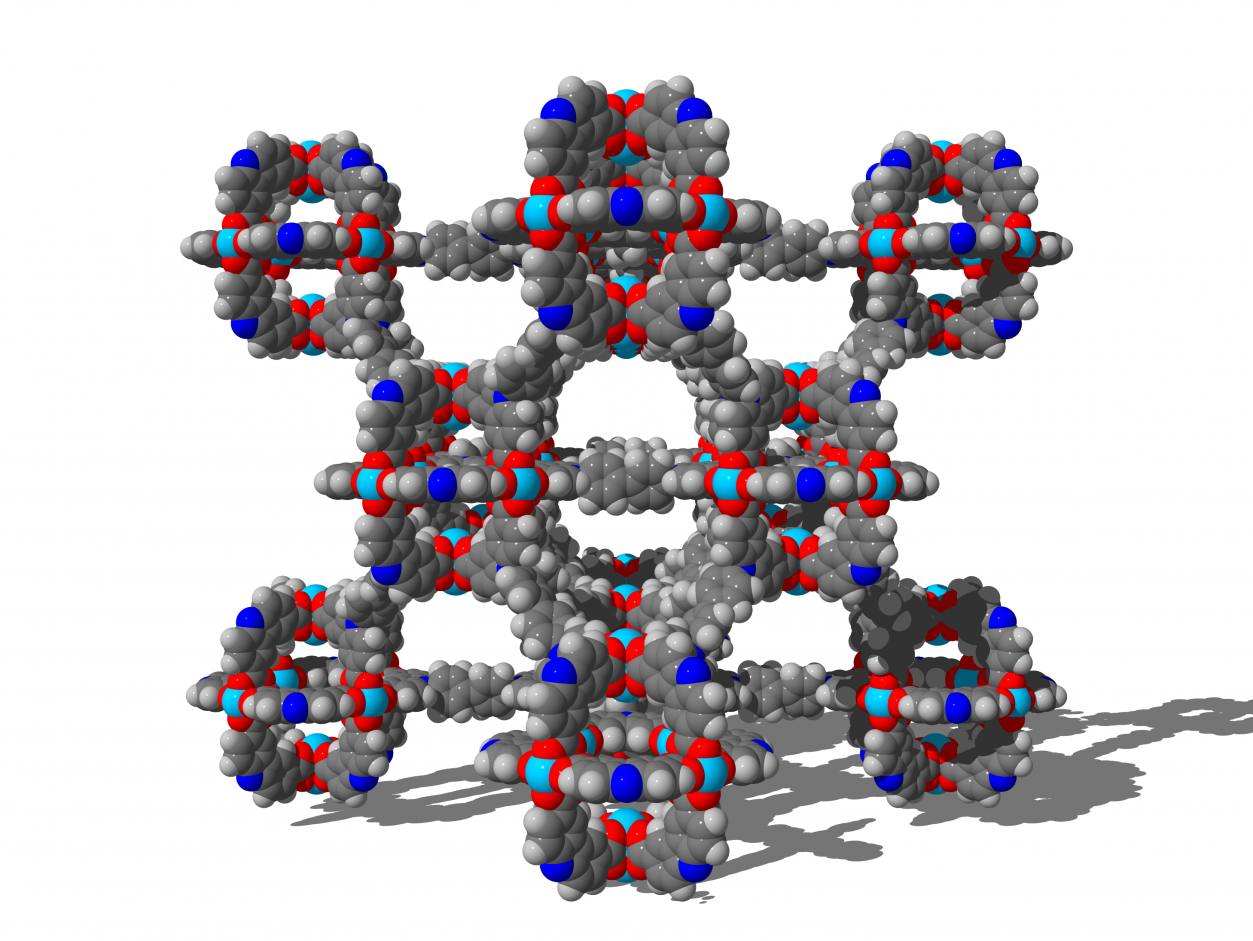 Die dreidimensionale Netzwerkstruktur des ultraporösen und flexiblen Materials DUT-49 besitzt eine hohe Speicherkapazität für Methangas. © TU Dresden, Prof. AC1