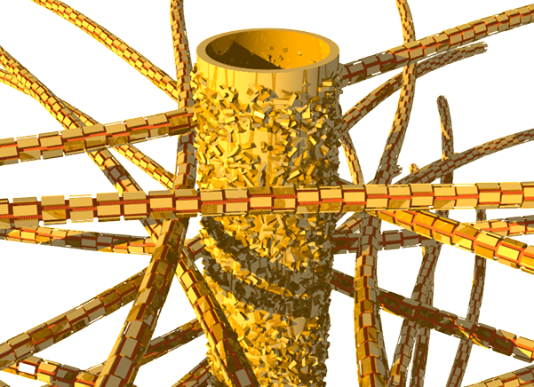 Ganze 5000 Mal und mehr beißt der Mensch an einem Tag zu. Gesunde Zähne brechen dabei erstaunlich selten, und sie halten beim Kauen starkem Druck stand. Das liegt an ihrem Aufbau. Ein Zahn besteht aus dem Zahnbein, auch Dentin genannt, welches von Zahnschmelz umhüllt ist. Das Geheimnis steckt im Detail. Das Zahnbein ist eine knochenähnliche Substanz, bestehend aus kleinsten mineralischen Nanopartikeln, Kollagen und Wasser. Während der Zahnschmelz vor allem aus dem Mineral cHAP gebildet wird, ist das Dentin ein komplexes Nanokomposit. In organische Kollagen-, also Eiweißfasern, sind anorganische Nanopartikel aus cHAP-Kristallen eingebettet. Für die hohe Belastbarkeit der Biostruktur sind innere Spannungen verantwortlich, wie die Wissenschaftler um Dr. Jean-Baptiste Forien und Dr. Paul Zaslansky vom Julius Wolff Institut der Charité bereits nachweisen konnten.
