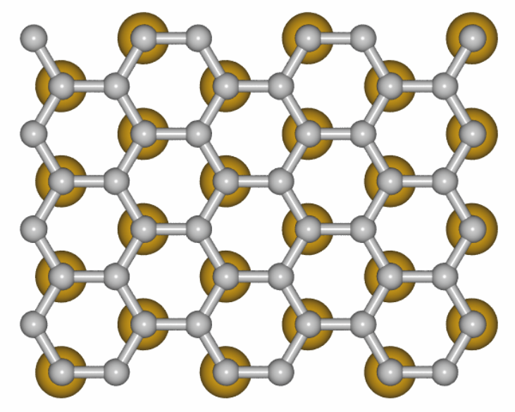 Die Illustration zeigt, wie die Goldatome unter dem Graphen sitzen.