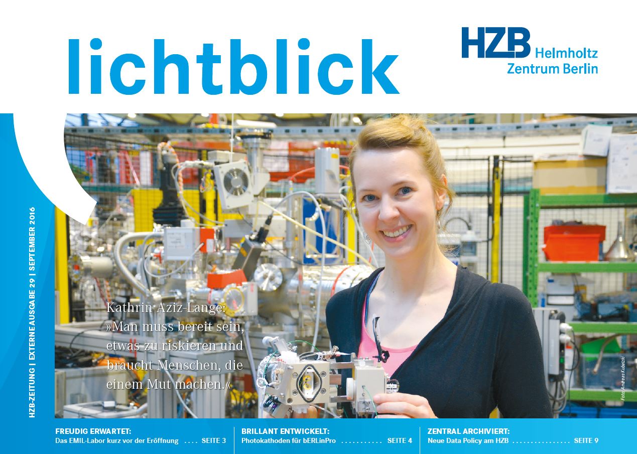 In der neuen Ausgabe erwarten Sie viele interessante Themen. Unter anderem erzählt Simone Raoux, warum sich viele Forscherinnen und Forscher auf die Eröffnungen des Energy Materials In-situ Laboratory (EMIL)-Labors am 31. Oktober 2016 freuen. Mit dem Anschluss an das Synchrotronlicht von BESSY II können die Forschenden eine unglaubliche Vielfalt an Energie-Materialien charakterisieren. Hier geht es zur Online-Ausgabe.