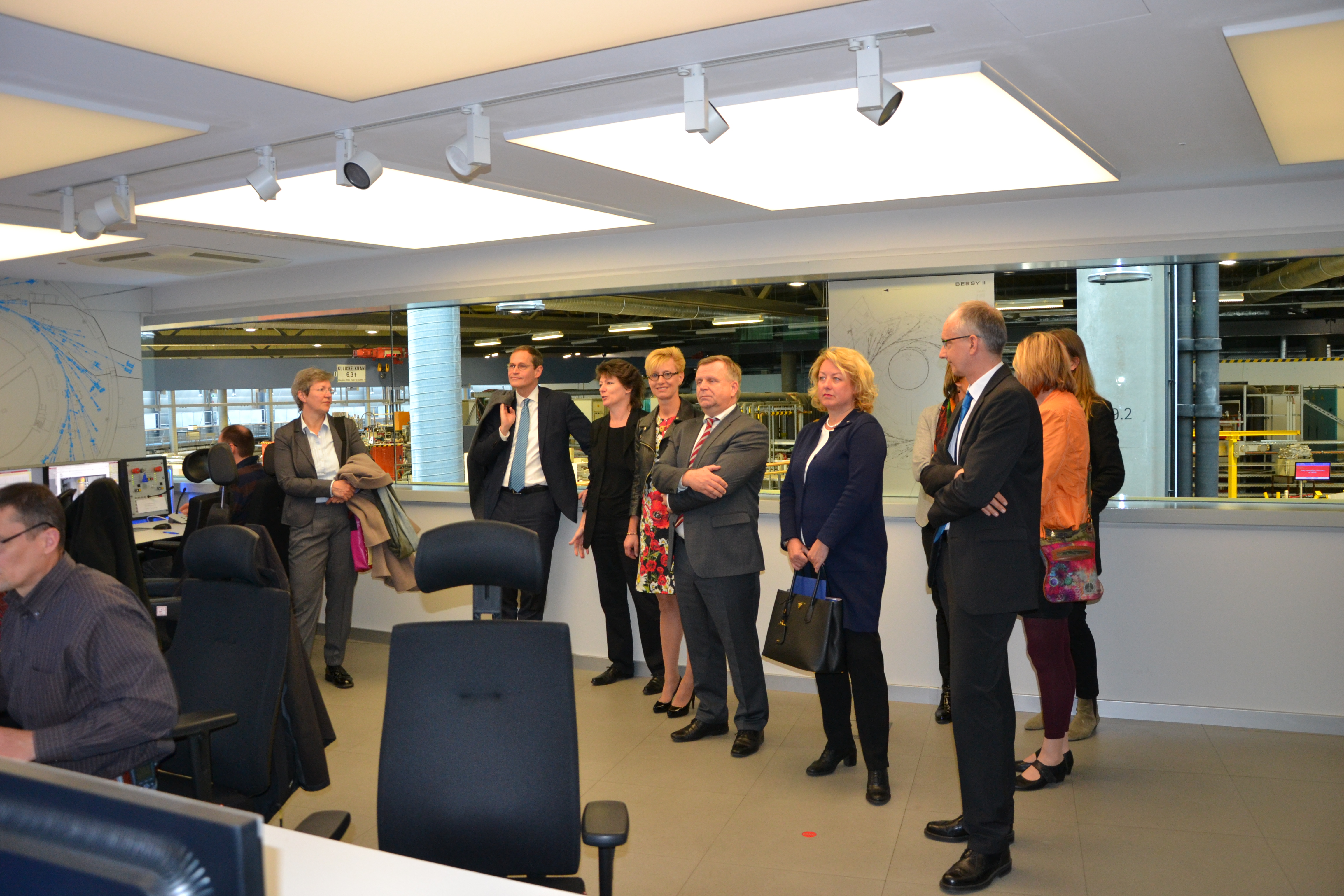 Kooperationen mit den Berliner Universitäten, die Standorte Wannsee und Adlershof sowie Berlin als wichtiger Forschungsstandort oder die Zukunftsausrichtung des HZB waren nur einige der diskutierten Themen. Die Gespräche waren anregend, sodass die Zeit im Flug verging, doch einen Blick in den Kontrollraum von BESSY II ließ sich der Regierende nicht nehmen. Er zeigte sich beeindruckt von BESSY II und wie ehrgeizig und fokussiert dessen Umbau zu BESSY-VSR vorangetrieben wird.
