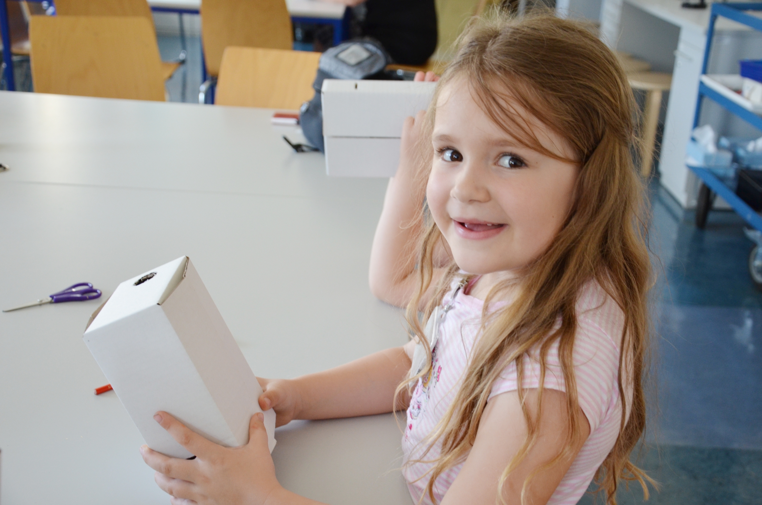 Die Kinder im Alter von fünf und sechs Jahren bauten Spektroskope aus Pappkarton und CD-Stückchen. Anschließend erforschten sie die Farben des Lichts von verschiedenen Lichtquellen. „Uns hat der Tag der kleinen Forscher, an dem wir uns zum zweiten Mal beteiligten, viel Spaß gemacht. Auch wenn die Kinder viel jünger waren als bei unseren normalen Projekttagen, haben sie konzentriert und mit großer Neugierde mitgearbeitet“, sagt Dagmar Köpnick-Welzel, die das Angebot im Schülerlabor Wannsee betreut hat.