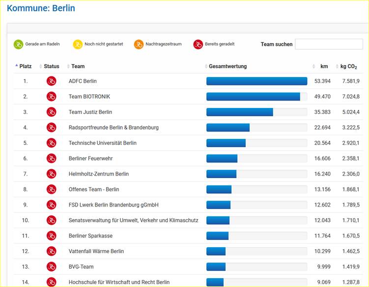 Altogether, during these three weeks, the cyclists of Berlin rode 591,000 kilometres – a handsome result, on top of which 84,000 kilograms of CO2 could be saved.