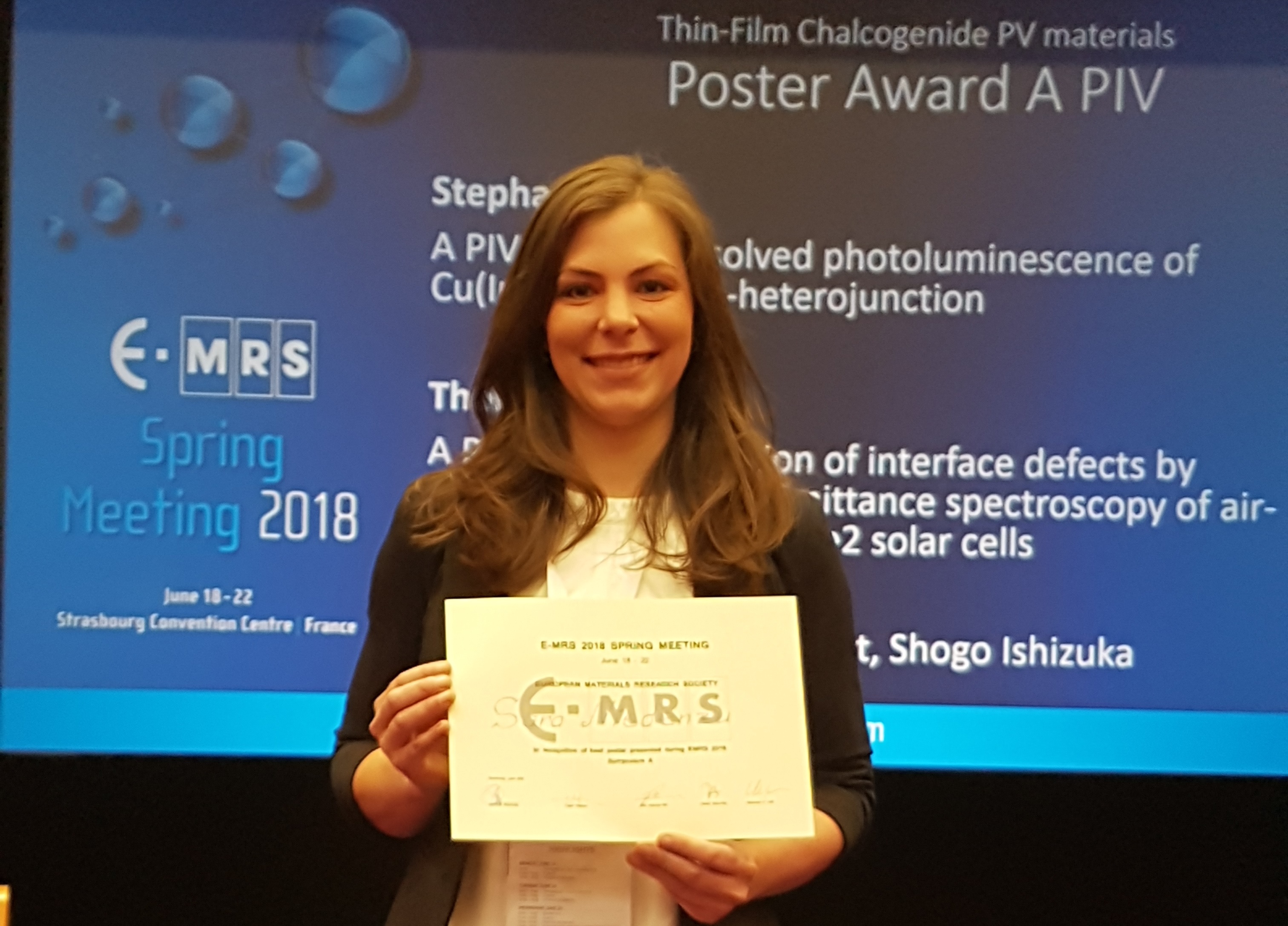 Auf dem Frühjahrestreffen der European Materials Research Society vom 18.-22. Juni 2018 in Straßburg erhielt Hannes Hempel den Preis für den besten Vortrag und Sara Niedenzu wurde für ihr Poster ausgezeichnet. Beide promovieren in der Graduiertenschule MatSEC am HZB. Die Frühjahrstagung E-MRS ist mit 2500 Teilnehmenden die größte Konferenz für Materialforschung in Europa.