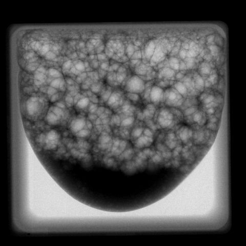 Für ihre Versuche haben die Wissenschaftler ein transportables Labor in der Größe eines Umzugskartons gebaut. Darin: ein Ofen, in dem der Metallschaum erzeugt wird und eine Röntgenanlage, die die Evolution des Schaums festhält. Die mitgebrachten Filme zeigen, was mit dem flüssigen Schaum während des Fluges passiert: bei starker Erdanziehung bildet sich am unteren Rand des Schaums ein großer Tropfen flüssigen Metalls. In Schwerelosigkeit verschwindet der Tropfen sofort - seine Flüssigkeit verteilt sich gleichmäßig über den gesamten Schaum.