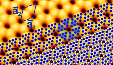 They found that the P atoms do not arrange independently of the gold substrate but try to adjust to the spacings of the Au atoms. This distorts the corrugated honeycomb lattice in a regular manner which in turn affects the behavior of electrons in blue phosphorus. As a result, the top of the valence band that defines the one end of the semiconducting band gap agrees with the theoretical predictions, but is somewhat shifted.