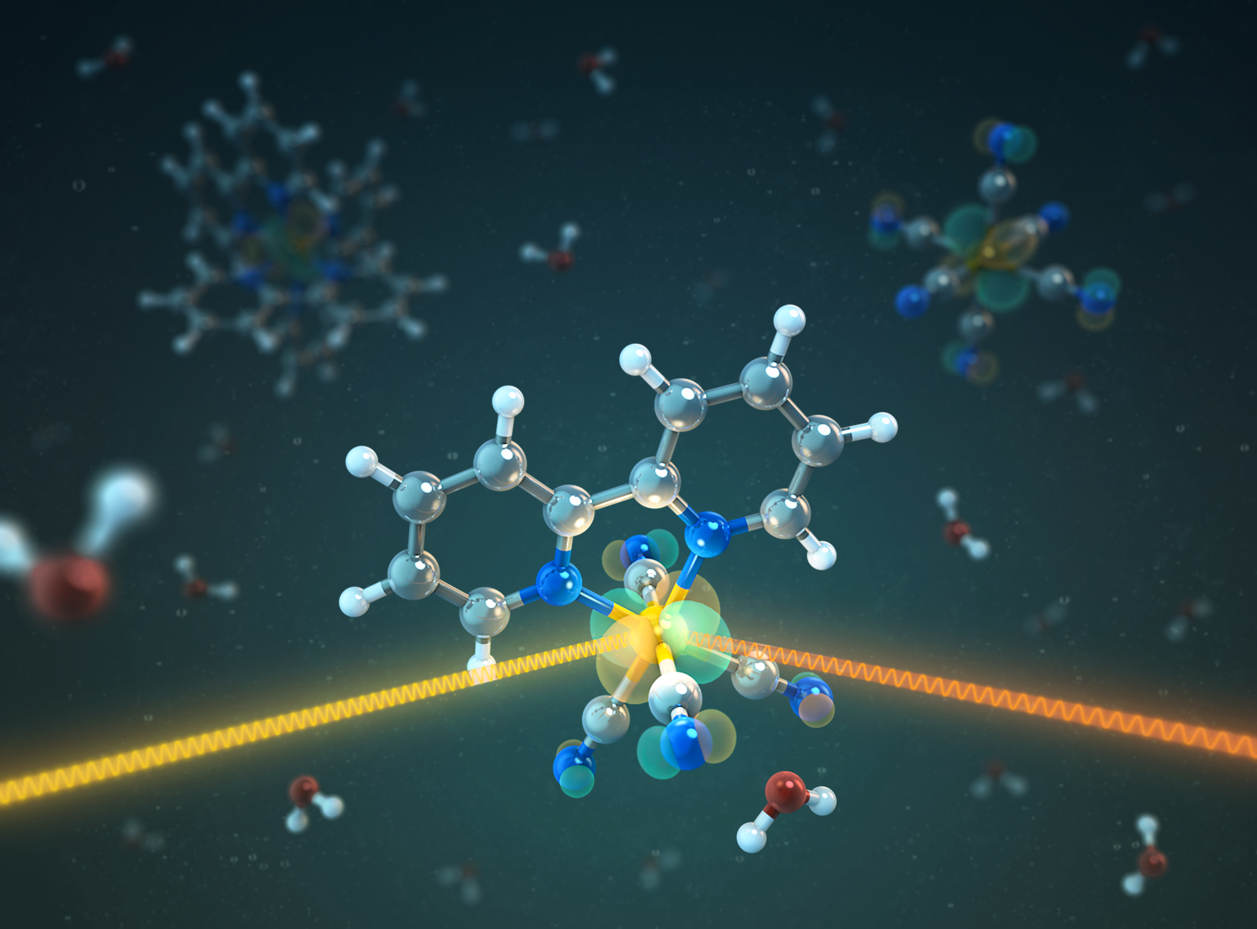 Transition-metal complexes - that is a cumbersome word for a class of molecules with important properties: An element from the group of transition metals sits in the centre. The outer electrons of the transition-metal atom are located in cloverleaf-like extended d-orbitals that can be easily influenced by external excitation. Some transition-metal complexes act as catalysts to accelerate certain chemical reactions, and others can even convert sunlight into electricity. The well-known dye solar cell developed by Michael Graetzel (EPFL) in the 1990s is based on a ruthenium complex.