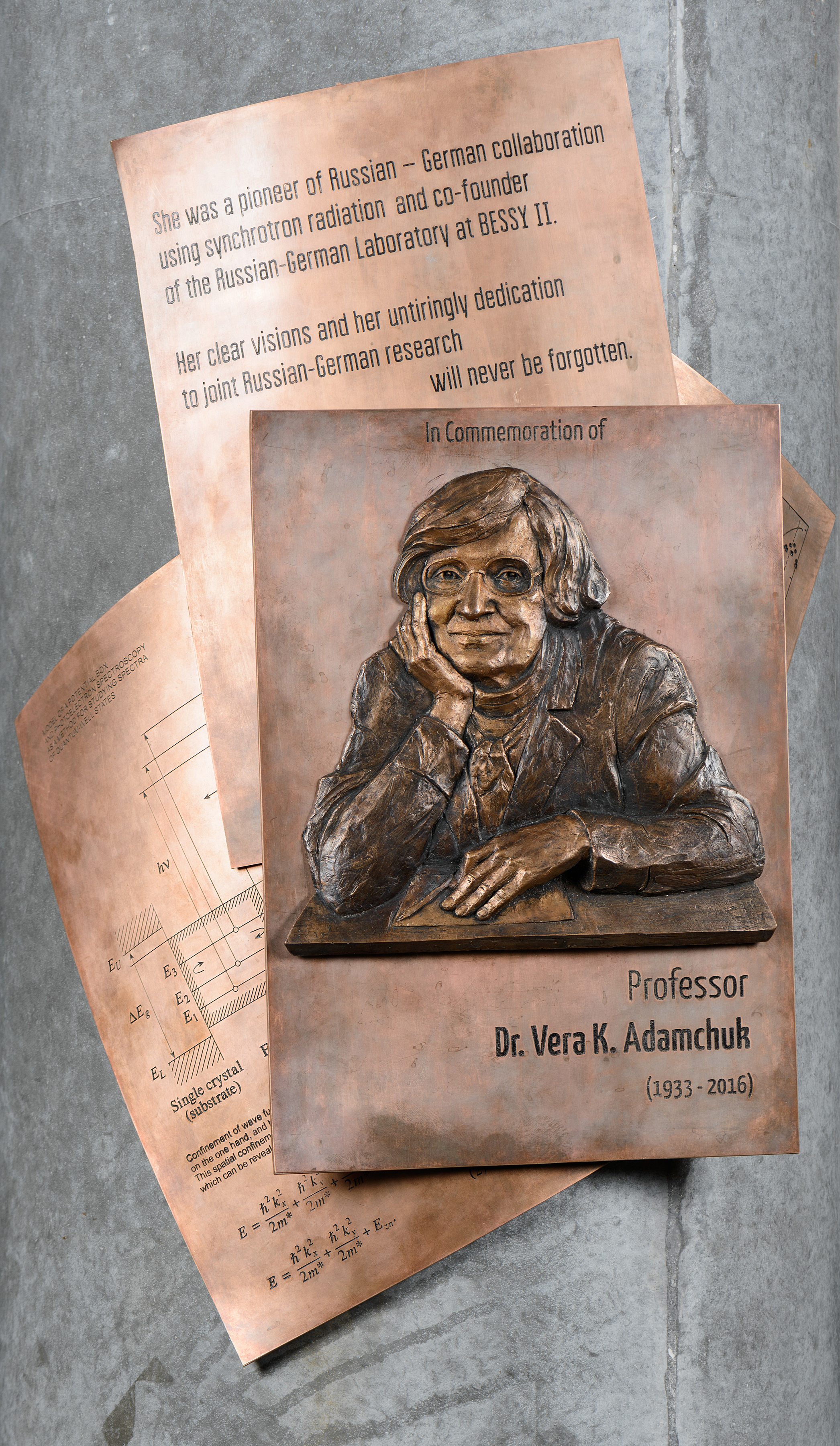 Das Kunstwerk hängt nun beim Strahlrohr des „Russisch-Deutschen Labors“ in der Experimentierhalle von BESSY II. Es erinnert an die verstorbene russische Physikerin Vera Adamchuk. Sie gilt als Pionierin für die Zusammenarbeit auf dem Gebiet der Synchrotronstrahlung zwischen beiden Ländern und hat das „Russisch-Deutsche Labor“ an BESSY II vor gut 15 Jahren mitbegründet.