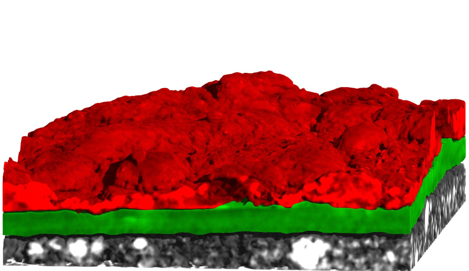 Die Tomographien zeigen, wie sich bereits nach wenigen Lade-Entlade-Zyklen eine Schicht aus Mikrostrukturen zwischen der Separatorschicht und der Lithium-Elektrode bildet. Diese Mikrostrukturen bestehen aus Reaktionsverbindungen, die sich im Elektrolyten bilden. Sie können unterschiedliche Gestalt annehmen, von einem eher ungeordneten Schlamm über moosartige Strukturen bis hin zu nadelförmigen Dendriten, die sogar gefährliche Kurzschlüsse im Akku verursachen können.