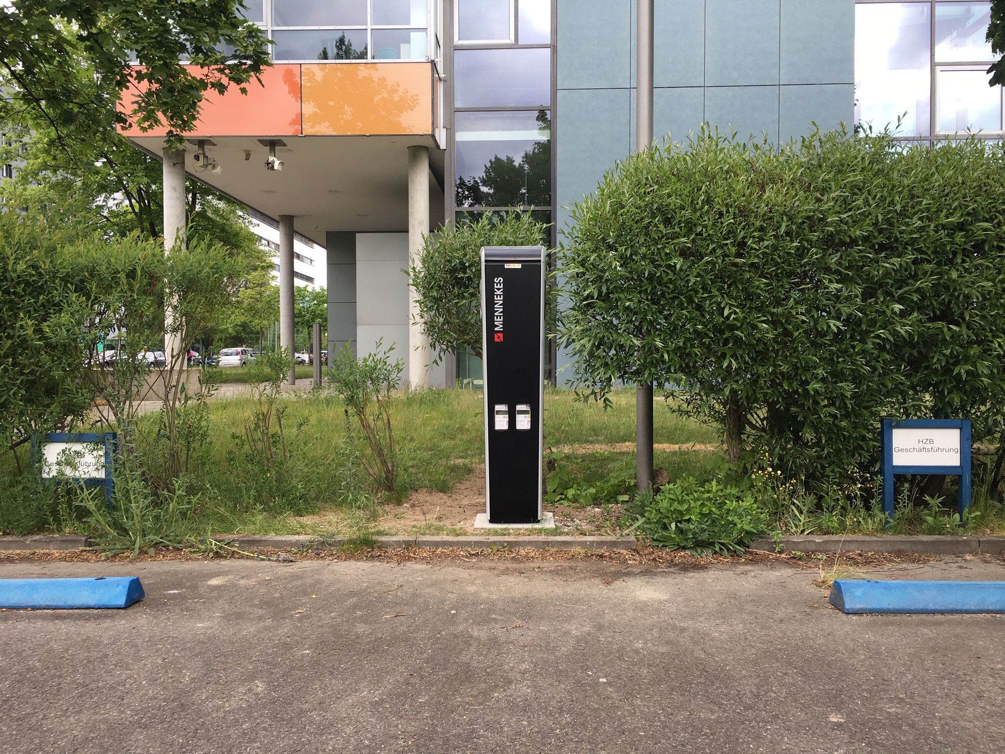 Am 14. Mai 2020 wurden in Nähe des BESSY II-Hauptgebäudes zwei Ladesäulen für Elektroautos installiert. Hier soll aber nicht nur die Hybrid-Dienstwagenflotte geladen werden. Demnächst haben auch Mitarbeiterinnen und Mitarbeiter die Möglichkeit, an einer Säule ihre privaten PKWs gegen eine Gebühr aufzuladen.