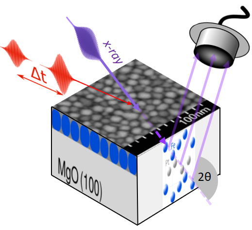 Dieses faszinierende Phänomen hat nun ein Team um Prof. Matias Bargheer erstmals an unterschiedlichen Eisen-Platin-Dünnschichten experimentell verglichen. Bargheer leitet eine gemeinsame Forschergruppe am Helmholtz-Zentrum Berlin und der Universität Potsdam. Gemeinsam mit Kollegen aus Lyon, Brno und Chemnitz wollte er untersuchen, wie sich das Verhalten von perfekt kristallinen FePt-Schichten von den FePt-Dünnschichten unterscheidet, die für HAMR-Speicher verwendet werden. Diese bestehen aus kristallinen Nanokörnern aus übereinandergestapelten einatomaren Lagen von Eisen und Platin, die in eine Matrix aus Kohlenstoff eingebettet sind.