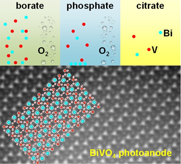 "Aus diesen Messungen konnten wir einen nützlichen Parameter, die Stabilitätszahl (S), bestimmen", sagt Ahmet. Diese Stabilitätszahl wird aus dem Verhältnis zwischen den erzeugten O2-Molekülen und der Anzahl der gelösten Metallatome im Elektrolyten berechnet und ist in der Tat ein perfekt vergleichbares Maß für die Photoelektrodenstabilität. Die Stabilität einer Photoelektrode ist hoch, wenn die Spaltung von Wasser schnell voranschreitet (in diesem Fall die Entwicklung von O2) und nur wenige Metallatome in den Elektrolyten gelangen. Dieser Parameter kann auch verwendet werden, um die Veränderung der Photoelektrodenstabilität während ihrer Lebensdauer zu bestimmen oder Unterschiede in der Stabilität von BiVO4 in verschiedenen pH-gepufferten Borat-, Phosphat- und Citrat-(Lochfänger-)Elektrolyten zu beurteilen.