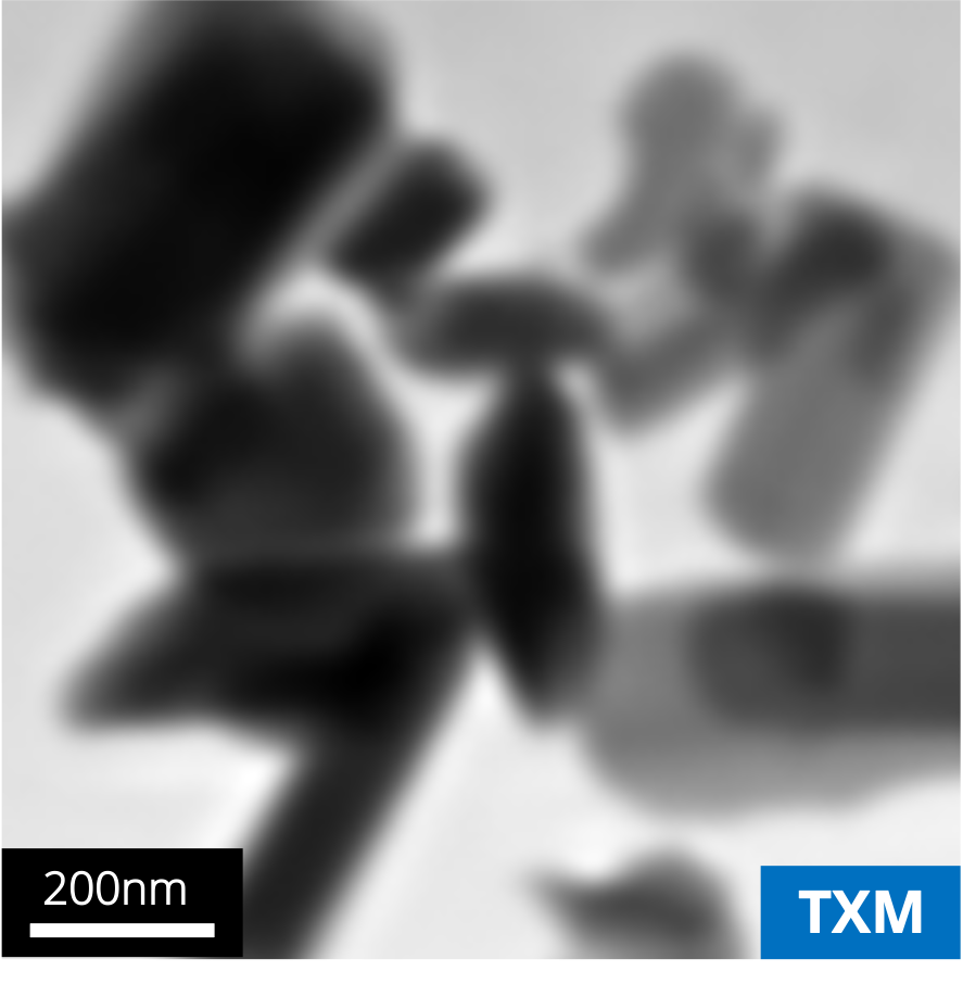 Aufnahme der gleichen Probenstelle mit einem Transmissions-Röntgenmikroskop TXM (U41 Strahlrohr bei BESSY II, HZB) in einer Gasatmosphäre. © C. Pratsch/HZB
