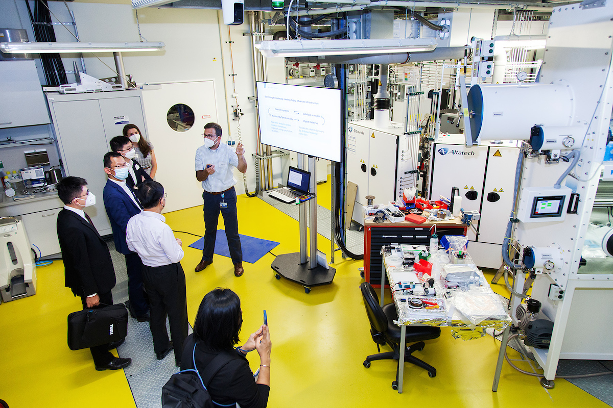 The delegation led by Heng Swee Keat got some insights into HZB's energy and materials research as well as the science conducted at BESSY II light source and in the new catalyst laboratory CatLab.