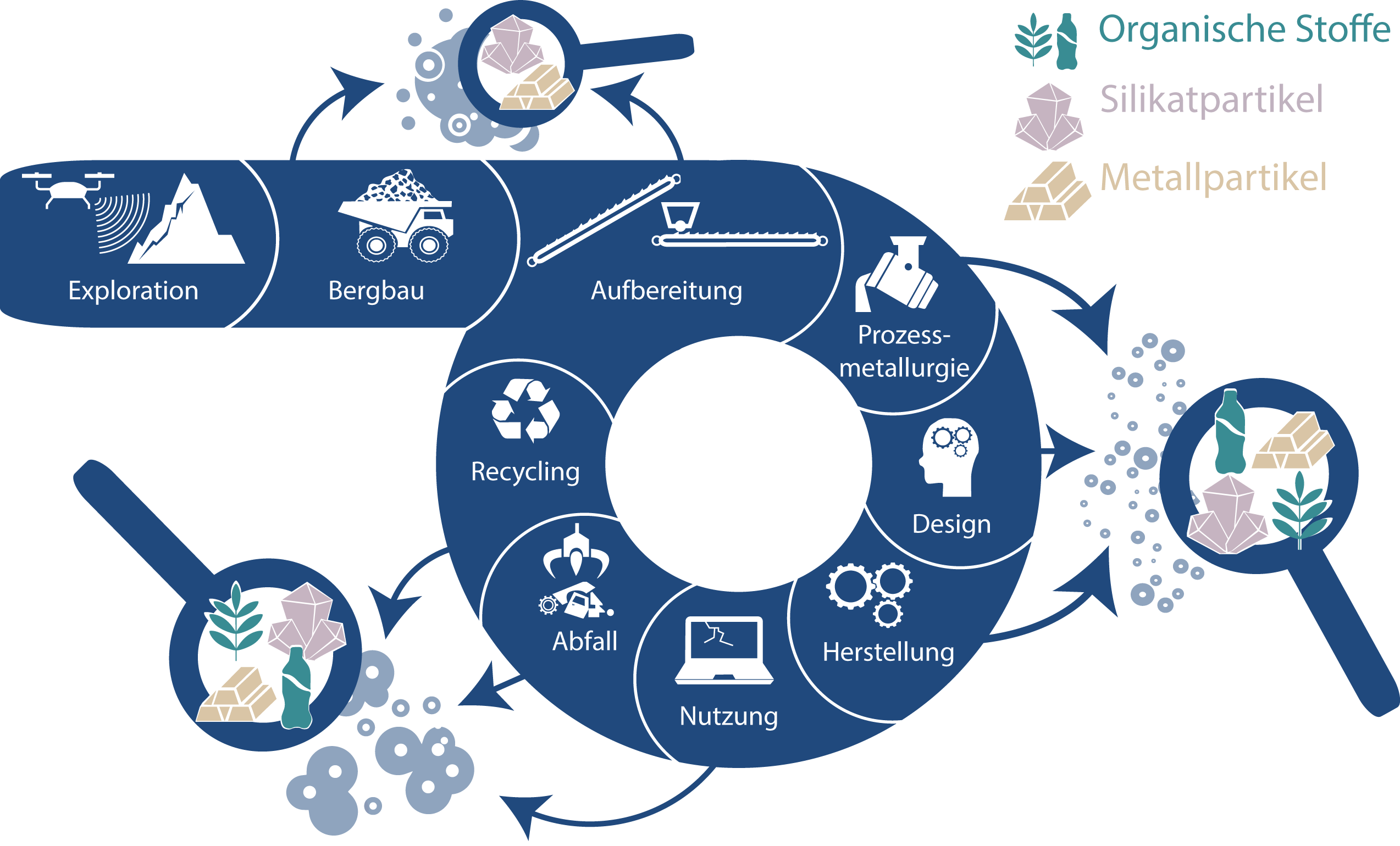 Die Forscher*innen der sechs beteiligten Institutionen beschäftigen sich ab Juli 2022 in dem fünfjährigen Projekt mit Feinststoffen anthropogenen Ursprungs wie Mikroplastik, mineralischen Additiven (Zusatzstoffen) oder Metallen, für die es bislang kaum Verwertungsmöglichkeiten gibt. Mittels innovativer Prozesse sollen die derzeit noch sehr niedrigen Verwertungsquoten dieser feinstpartikulären Stoffe erhöht und die verbleibenden Reststoffe unschädlich abgelagert werden, um eine nachhaltige Kreislaufwirtschaft voranzubringen.