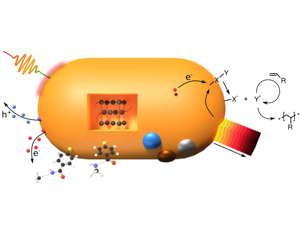 Licht wird durch den Nanopartikel fokussiert und die Energie lokal in verschiedene Formen umgewandelt, die dann Chemische Transformation antreiben.