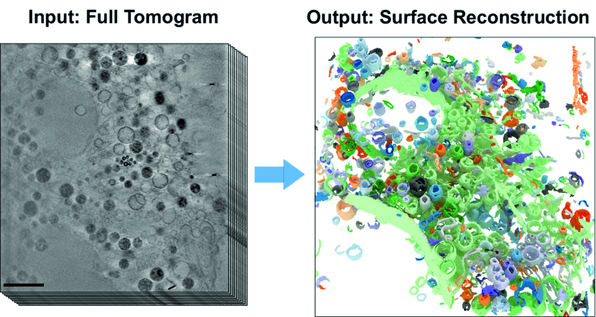 Mit dem hochbrillanten Röntgenlicht von BESSY II lassen sich Mikroskopie-Aufnahmen mit räumlicher Auflösung bis hin zu einigen zehn Nanometern erstellen. Dabei können ganze Zellvolumina untersucht werden, ohne dass eine aufwendige Probenvorbereitung wie bei der Elektronenmikroskopie nötig wäre. Unter dem Röntgenmikroskop erscheinen die winzigen Zellorganellen mit ihren feinen Strukturen und Grenzmembranen deutlich und detailliert, sogar in drei Dimensionen. Daher eignet sich die Kryo-Röntgentomografie hervorragend, um Veränderungen in den Zellstrukturen zu untersuchen, die zum Beispiel durch externe Auslöser verursacht werden. Die Auswertung der 3D-Tomogramme erforderte jedoch bisher eine weitestgehend manuelle und arbeitsintensive Datenanalyse. Um dieses Problem zu überwinden, haben nun Teams um den Informatiker Prof. Dr. Frank Noé und den Zellbiologien Prof. Dr. Helge Ewers (beide Freie Universität Berlin) mit der Abteilung Röntgenmikroskopie am HZB zusammengearbeitet. Dabei entwickelte das Informatik-Team einen neuartigen, selbstlernenden Algorithmus. Diese KI-basierte Analysemethode basiert auf der automatisierten Erkennung subzellularer Strukturen und beschleunigt die quantitative Analyse der 3D-Röntgendatensätze. Die Aufnahmen der 3D-Bilder zur Untersuchung des Inneren von biologischen Proben wurden an der U41-Beamline an BESSY II durchgeführt.