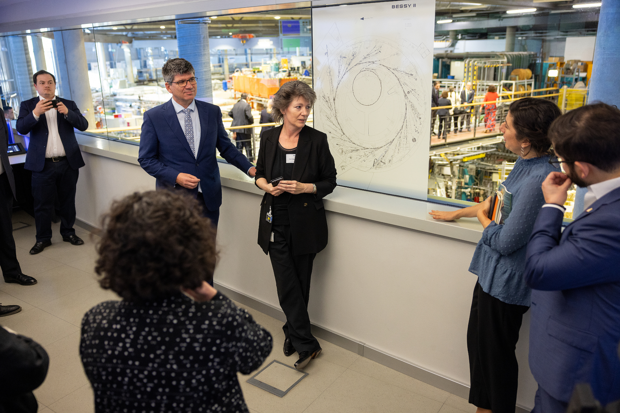 Die offizielle Delegation, die das Staatsoberhaupt auf seiner Präsidentenreise begleitet, setzte sich aus Vertreter*innen nationaler Behörden, Parlamentariern, Geschäftsleuten, Akademiker*innen und Forschenden zusammen. Auch die chilenische Ministerin für Wissenschaft und vier Minister anderer Bereiche waren dabei. Nach einer kurzen Vorstellung des Forschungszentrums konnten sie die Röntgenquelle BESSY II besichtigen und auch direkt Kontakt zu Forschenden des HZB aufnehmen (siehe Bildergalerie).