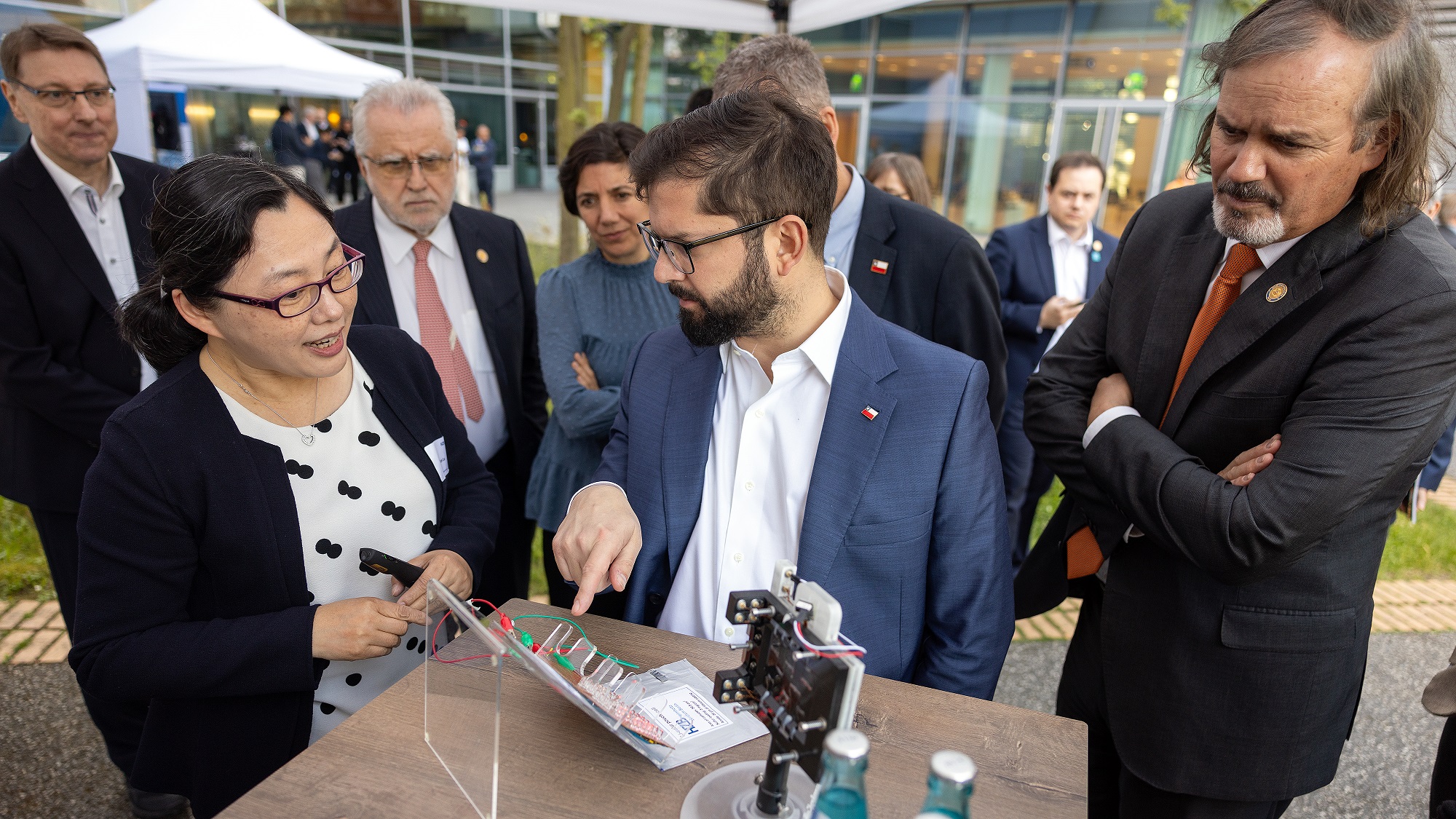 Das Helmholtz-Zentrum Berlin in Adlershof war der letzte Berliner Programmpunkt der chilenischen Delegation, die auch von der chilenischen Botschafterin in Berlin begleitet wurde. Durch offizielle Besuche in Deutschland und Schweden sowie die Teilnahme am Friedensgipfel für die Ukraine in der Schweiz und am hochrangigen Politischen Forum SDG4 (Sustainable Development Goals 4) zur Bildung in Frankreich möchte Chile seine Beziehungen in Europa vertiefen. Aktuell teilen sich Chile und Deutschland den Vorsitz im Klimaclub, in dem sich inzwischen 38 Staaten zusammengeschlossen haben. Im Rahmen eines Pressegesprächs nach einem Treffen mit Bundeskanzler Olaf Scholz betonte der chilenische Präsident Boric die engen bilateralen Beziehungen, auch im Bereich der Wissenschaft: "Deutschland ist unser wichtigster Partner in der Europäischen Union und unser drittwichtigster Partner auf internationaler Ebene. Es ist gut und wichtig, dass wir die Bindungen, die weit über die Wirtschaft hinausgehen, beibehalten und ausbauen, zum Beispiel die Wissenschaftszusammenarbeit und den Austausch Studierender."