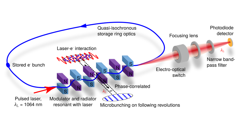 Doch was wäre, wenn ein Speicherring stattdessen von sich aus monochromatisches, kohärentes Licht mit Leistungen von einigen Kilowatt, analog einem Hochleistungslaser, liefern würde? Auf diese Frage fanden der Physiker Alexander Chao und sein Doktorand Daniel Ratner 2010 eine Antwort: Werden die in einem Speicherring kreisenden Elektronenpakete kürzer als die Wellenlänge des von ihnen ausgesendeten Lichts, dann wird die emittierte Strahlung kohärent und dadurch millionenfach leistungsstärker.