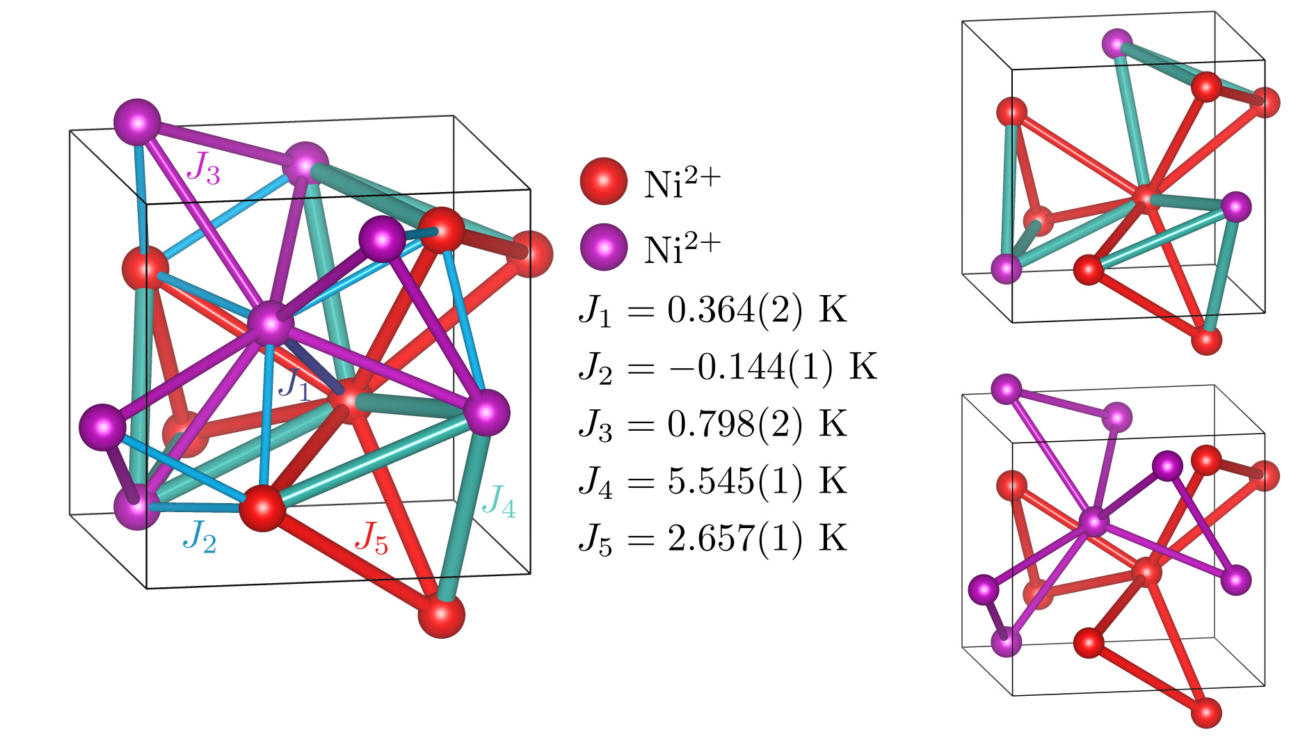 Für die Untersuchung wurden künstlich erzeugte Langbeinit-Kristalle mit der Summenformel K2Ni2(SO4)3 hergestellt. Dabei spielt das magnetische Element Nickel die entscheidende Rolle: Die Nickel-Ionen bilden untereinander zwei so genannte Trillium-Gitter, die miteinander verschränkt sind. Dies erzeugt die gewünschte magnetische Frustration, die noch verstärkt wird, wenn ein äußeres Magnetfeld anliegt: Die magnetischen Momente der Nickel-Ionen können sich nicht alle energetisch günstig ausrichten, sondern fluktuieren und bilden eine Quanten-Spin-Flüssigkeit.