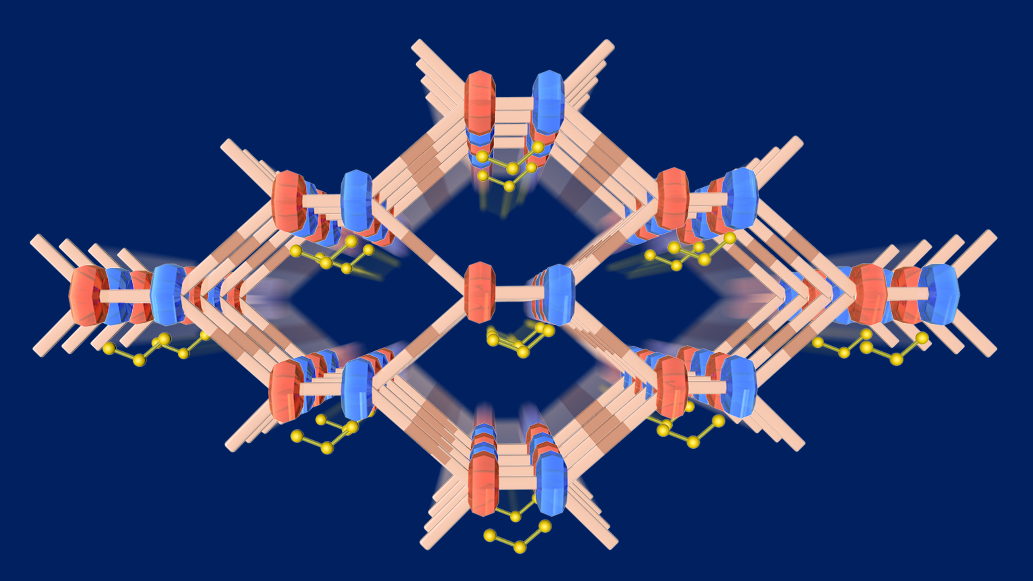 Crystalline framework structures made of organic polymers are a particularly interesting class of materials. They are characterised by their high porosity, comparable to a sponge, but with pores measuring only a few micrometres at most. These materials can exhibit special functionalities, which make them interesting for certain applications in electrochemical energy storage devices. For example, they could act as ‘hosts’ for sulphur compounds such as polysulphides in the electrodes of lithium-sulphur batteries. The idea is that the polysulphides could bind to the inner surfaces of pores in the COF structures and react there to generate elemental sulphur again. However, this has not yet worked properly.