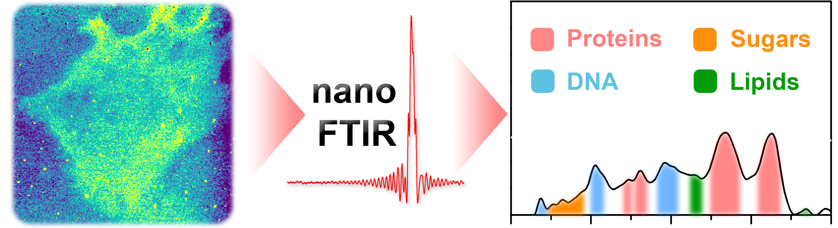Die Infrarot-Mikrospektroskopie ist eine zerstörungsfreie Methode, um biologische Gewebe oder Zellen zu charakterisieren. Mit Hilfe eines infrarotstreuenden Nahfeld-Optikmikroskops (s-SNOM) reichen selbst kleinste Probenvolumina aus, um reichhaltige Informationen über die molekulare Zusammensetzung, Struktur und Wechselwirkungen mit einer räumlichen Auflösung von bis zu 10 nm zu gewinnen.