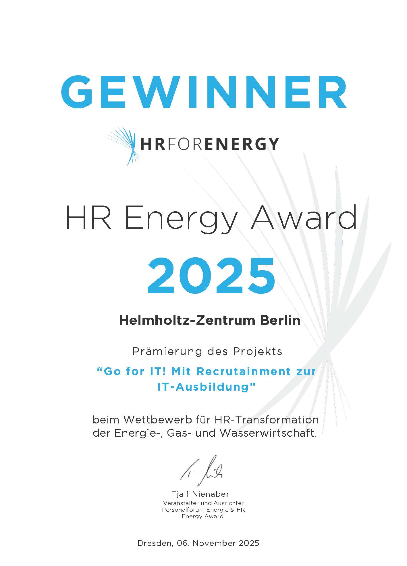 HZB gewinnt für Recruiting-Kampagne den HR Energy Award 2025