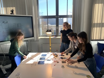 Sie bauten einen Mini-Beschleuniger, lernten den BESSY II kennen, traten vor eine Wärmebildkamera, maßen ihr eigenes Bauprojekt aus, stellten Solarzellen und leuchtenden Schmuck her und begaben sich auf eine Metadaten-Schnitzeljagd. Hier ein paar Impressionen von diesem Tag.